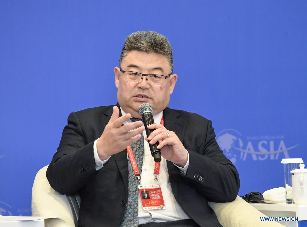 Yu Xuefeng, chairman of CanSino Biologics Inc., speaks at a sub-forum of Boao Forum for Asia annual conference in Boao, south China's Hainan Province, April 20, 2021. A sub-forum themed "CEO Roundtable - Supply and Accessibility of COVID-19 Vaccines" was held in Boao on Tuesday. (Xinhua/Li He)