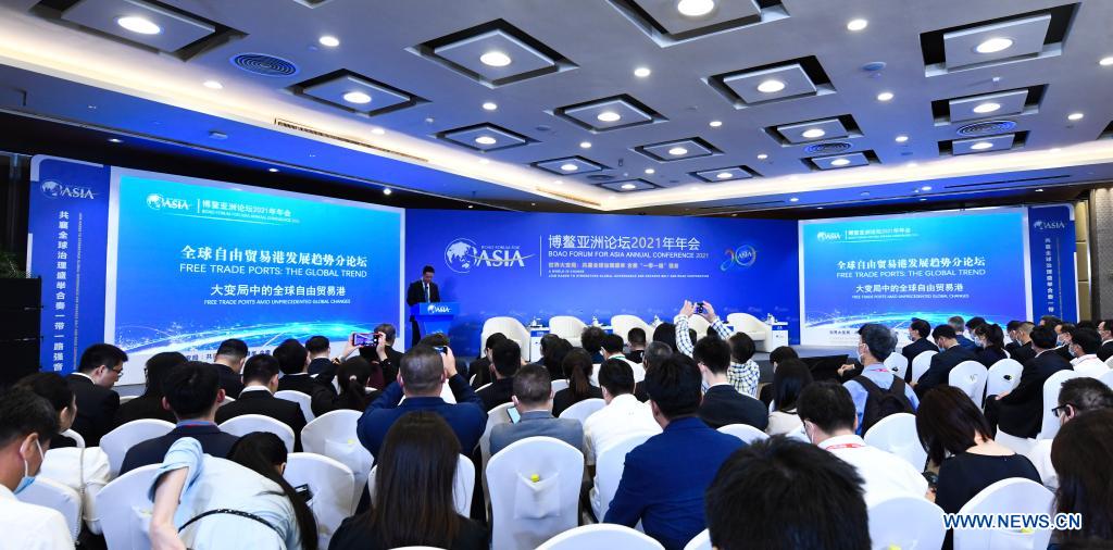 Photo taken on April 20, 2021 shows a view at a sub-forum themed "Free Trade Ports: The Global Trend" during Boao Forum for Asia annual conference in Boao, south China's Hainan Province. (Xinhua/Yang Guanyu)