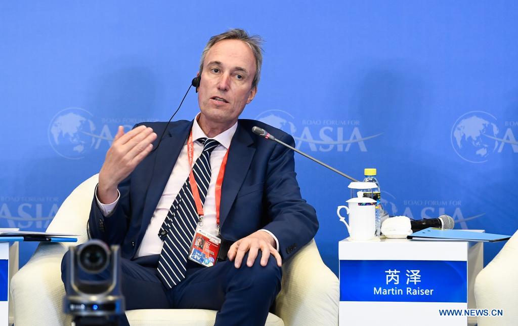 Martin Raiser, the World Bank's Country Director for China, speaks at a sub-forum themed "Free Trade Ports: The Golbal Trend" during Boao Forum for Asia annual conference in Boao, south China's Hainan Province, April 20, 2021. (Xinhua/Yang Guanyu)