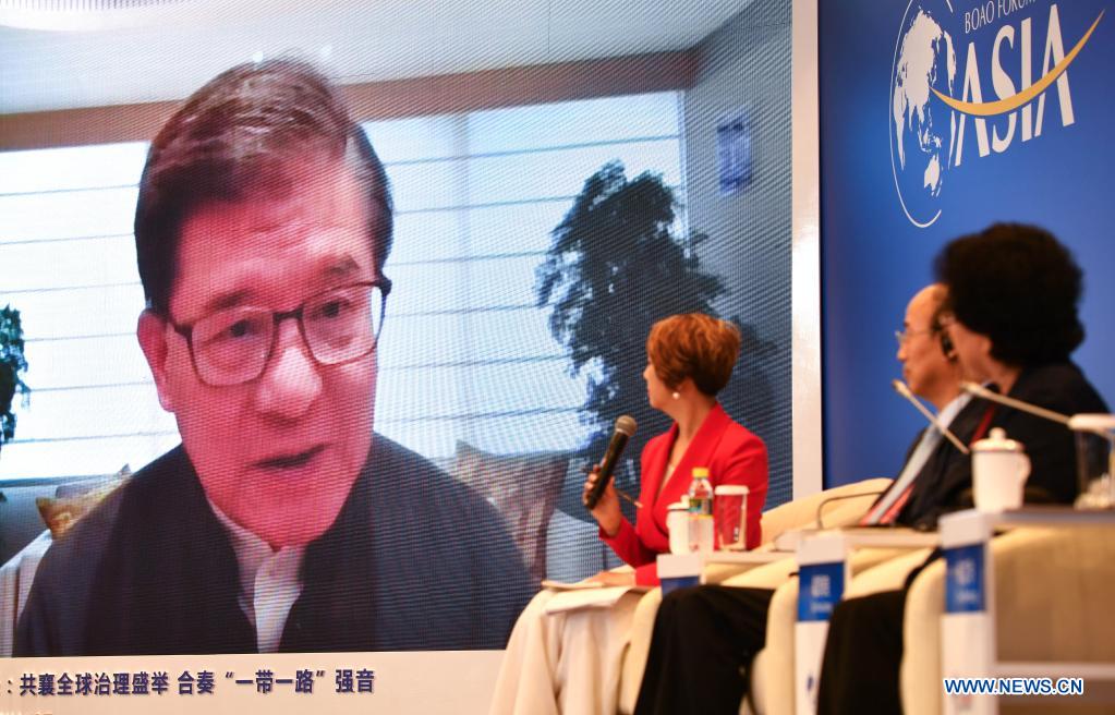 Vincent Lo Hong-sui, member of Board of Directors of the Boao Forum for Asia and chairman of Shui On Group speaks via video link at a sub-forum of Boao Forum for Asia annual conference in Boao, south China's Hainan Province, April 20, 2021. A sub-forum themed "Belt and Road Initiatives: Thriving Against the Current" was held in Boao on Tuesday. (Xinhua/Guo Cheng)