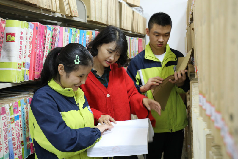 Photo shows Wu You (L) and her teacher Xie Xiaoli (C) reading a book. (Photo credit to Chengdu Special Education School)