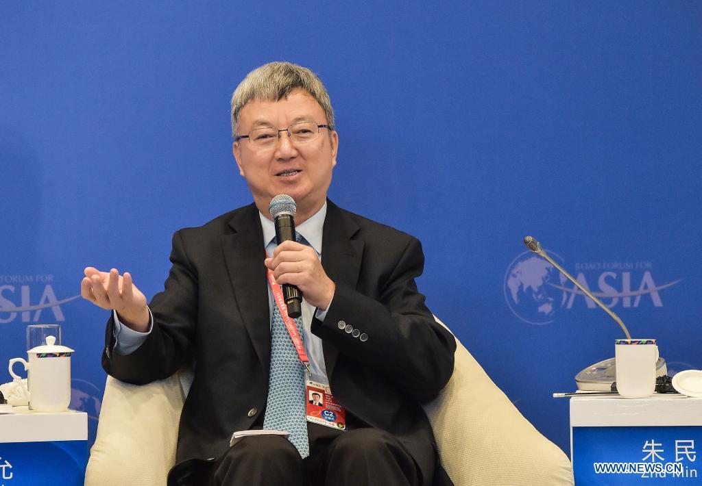 Zhu Min, Chairman of National Institution of Financial Research of Tsinghua University, speaks at a sub-forum themed "Dual Circulation - China's New Growth Paradigm" during Boao Forum for Asia (BFA) annual conference in Boao, south China's Hainan Province, April 21, 2021. A sub-forum themed "Dual Circulation - China's New Growth Paradigm" was held in Boao on Wednesday. (Xinhua/Li He)