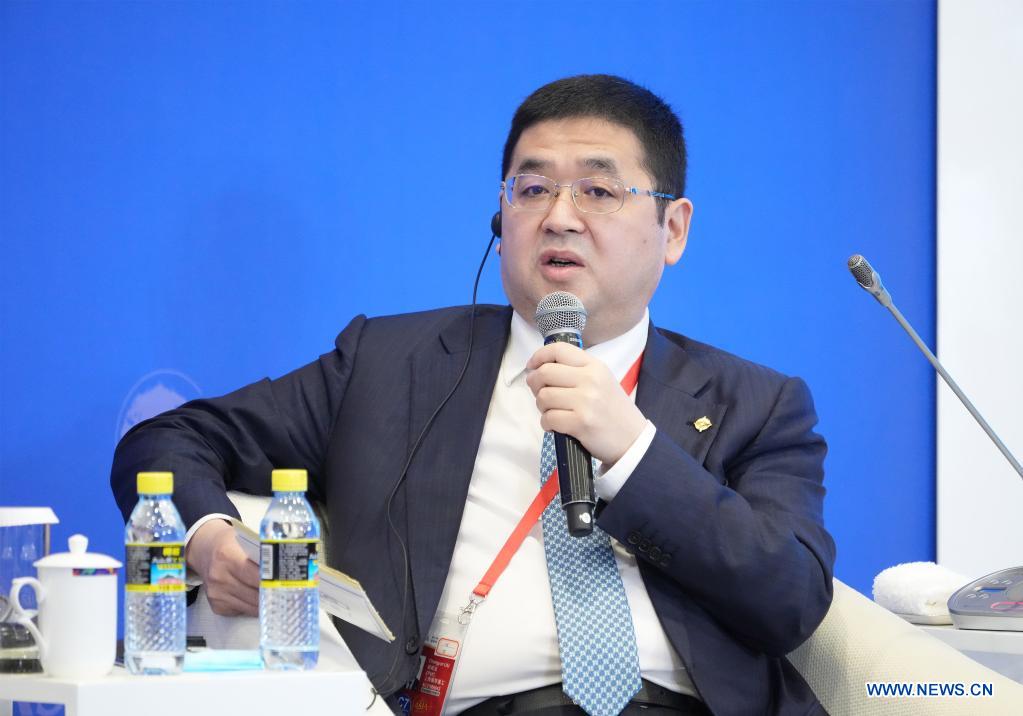 Liu Chengyun, chairman and president of Shanghai Zhenhua Heavy Industries Co., Ltd., speaks at a sub-forum themed on "Accelerate Infrastructure Connection to Unleash Development Potentials" during Boao Forum for Asia annual conference in Boao, south China's Hainan Province, on April 21, 2021. (Xinhua/Cai Yang)