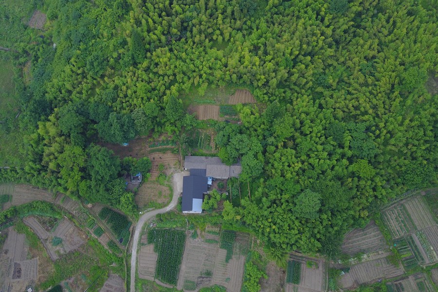 Aerial photo taken on June 9, 2017 shows the scenery of a cottage at Yucun Village of Anji City, east China's Zhejiang Province. (Xinhua/Zhang Cheng)