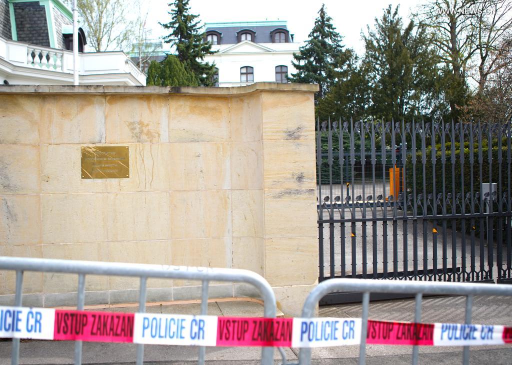 Photo taken on April 22, 2021 shows the Russian embassy in Prague, the Czech Republic. The Czech Republic will reduce and put a cap on the number of employees in the Russian embassy in Prague to the same number at the Czech embassy in Moscow, the Czech Foreign Ministry said on Thursday. (Photo by Dana Kesnerova/Xinhua)