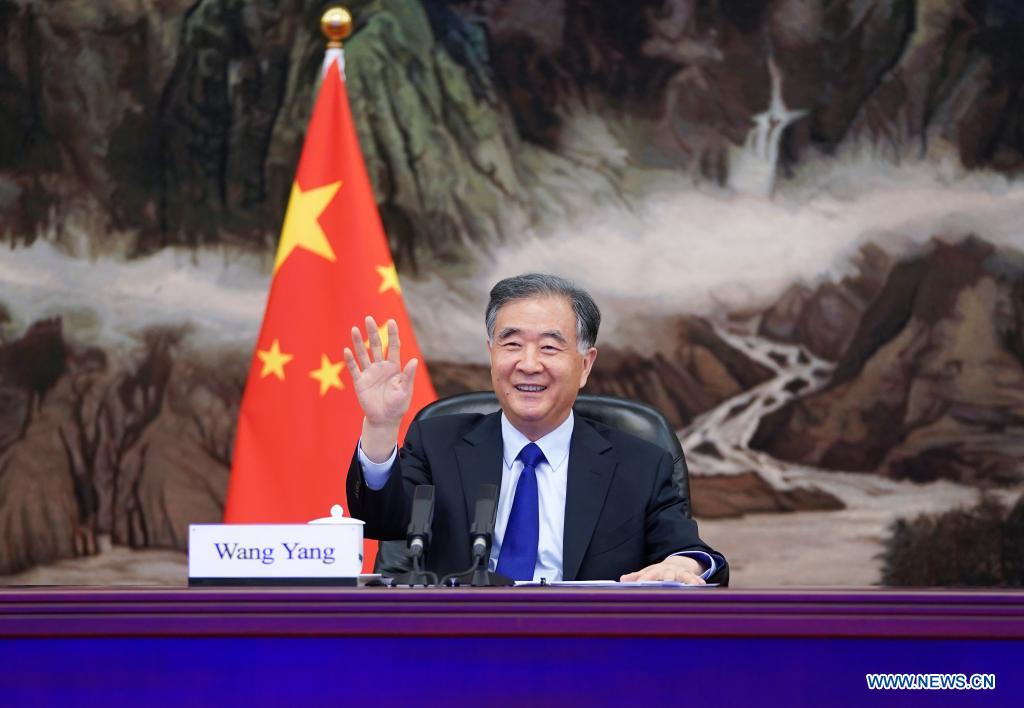 BEIJING, April 22 (Xinhua) -- China's top political advisor Wang Yang on Thursday met with Tomasz Grodzki, speaker of the Polish Senate (upper house), via video link, pledging to enhance friendly exchanges with Poland.