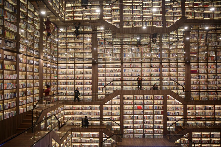 People read books at a library during the New Year holiday in Shaoyang City, central China's Hunan Province, Jan. 2, 2021. (Photo by Zeng Yong/Xinhua)