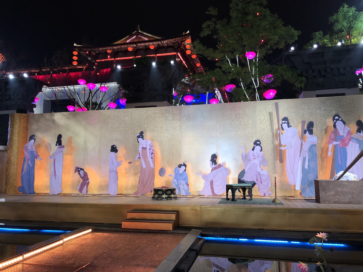The Great Tang All Day Mall features night views and light shows. [Photo by Liu Xiaozhuo/chinadaily.com.cn]