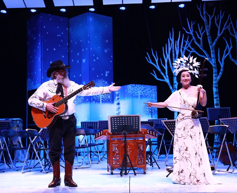 Mark Levine performs with his music partner Fu Han on the stage. (Photo provided by Mark Levine)