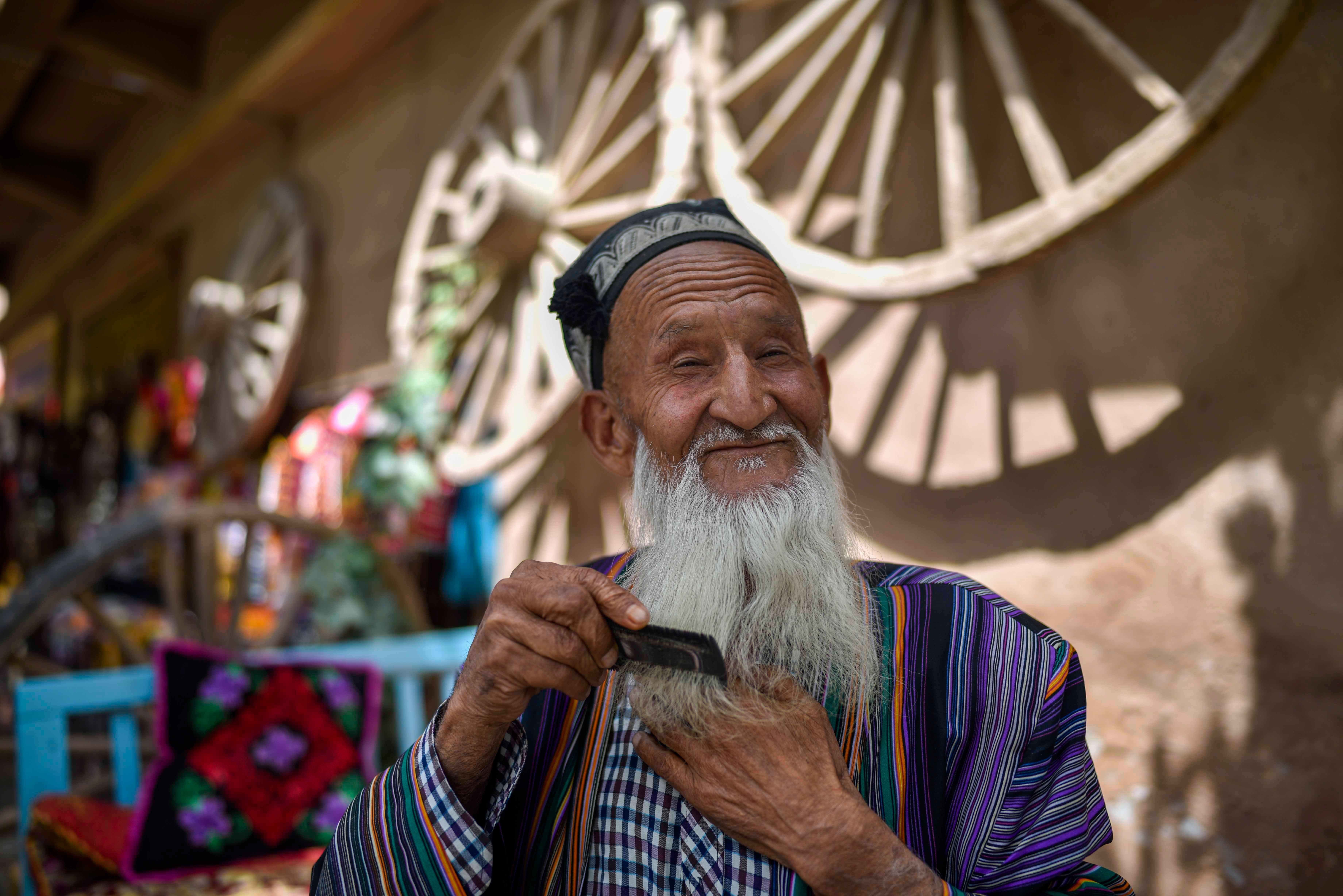 A local resident involved in tourism awaits customers in the old town of Kashgar, northwest China's Xinjiang Uygur Autonomous Region, June 12, 2019. (Xinhua/Zhao Ge)