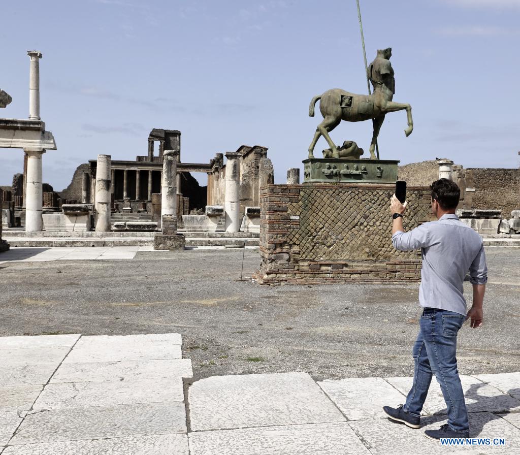 A tourist visits the Archaeological Park of Pompeii in Italy, on April 27, 2021. Italy took a first decisive step toward a post-pandemic phase on Monday, the first day of reopening amid decreasing coronavirus cases. (Xinhua)