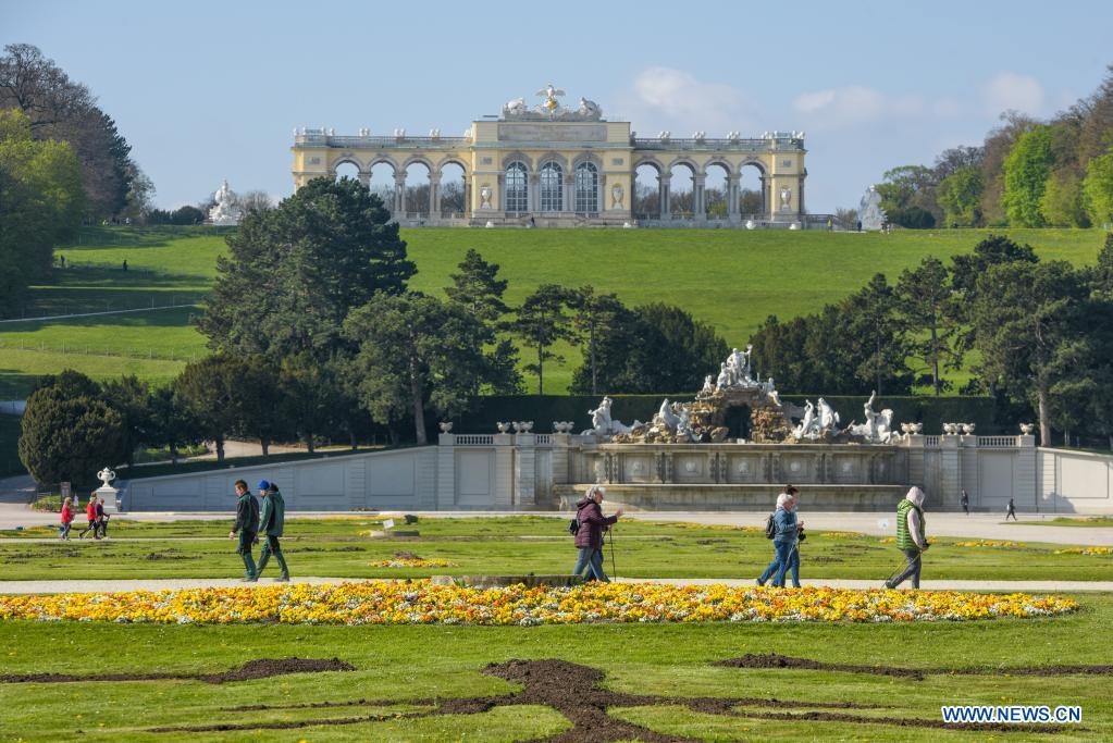 Photo taken on April 28, 2021 shows the scenery of Schonbrunn Gardens in Vienna, Austria. (Xinhua/Guo Chen)