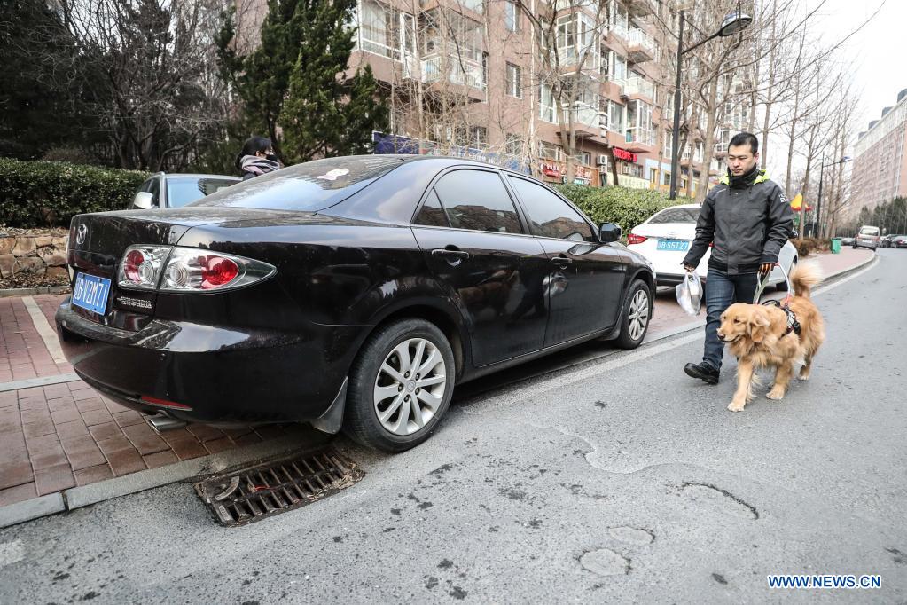 Visually impaired man Wen Shipeng walks with his guide dog in Dalian, northeast China's Liaoning Province, Jan. 13, 2020. The Dalian branch of the China Guide Dog Training Center, which was founded in May 2006, is a non-profit training institution of guide dogs in China. It has provided 239 free guide dogs to visually impaired people around the country. Guide dogs in the center are strictly selected from Labrador and Golden retrievers. Usually 45 days after birth, those puppies are sent to live with volunteer families, getting familiar with human life and learning simple orders. When the puppies grow up to about one year old, they are sent back to the center for professional training for one to one and a half year. Customized courses which are specially set according to the life scenes of visually impaired people, include going up and down stairs, avoiding obstacles and crossing streets. They also take a series of "exams", and the assessment of their characters is an important item. Those dogs that have a tendency to attack people will be dismissed. After completing all trainings, guide dogs will attend a 40-day joint training with visually impaired users. Every day, the users go out with guide dogs under the guidance of staff. Only when the two sides cooperate well and successfully pass the joint training period can the guide dog obtain a "graduation certificate" and be delivered to users. (Xinhua/Pan Yulong)