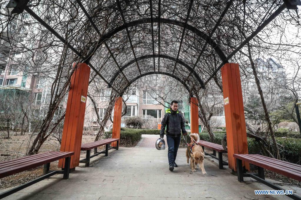 Visually impaired man Wen Shipeng walks with his guide dog in Dalian, northeast China's Liaoning Province, Jan. 13, 2020. The Dalian branch of the China Guide Dog Training Center, which was founded in May 2006, is a non-profit training institution of guide dogs in China. It has provided 239 free guide dogs to visually impaired people around the country. Guide dogs in the center are strictly selected from Labrador and Golden retrievers. Usually 45 days after birth, those puppies are sent to live with volunteer families, getting familiar with human life and learning simple orders. When the puppies grow up to about one year old, they are sent back to the center for professional training for one to one and a half year. Customized courses which are specially set according to the life scenes of visually impaired people, include going up and down stairs, avoiding obstacles and crossing streets. They also take a series of "exams", and the assessment of their characters is an important item. Those dogs that have a tendency to attack people will be dismissed. After completing all trainings, guide dogs will attend a 40-day joint training with visually impaired users. Every day, the users go out with guide dogs under the guidance of staff. Only when the two sides cooperate well and successfully pass the joint training period can the guide dog obtain a "graduation certificate" and be delivered to users. (Xinhua/Pan Yulong)