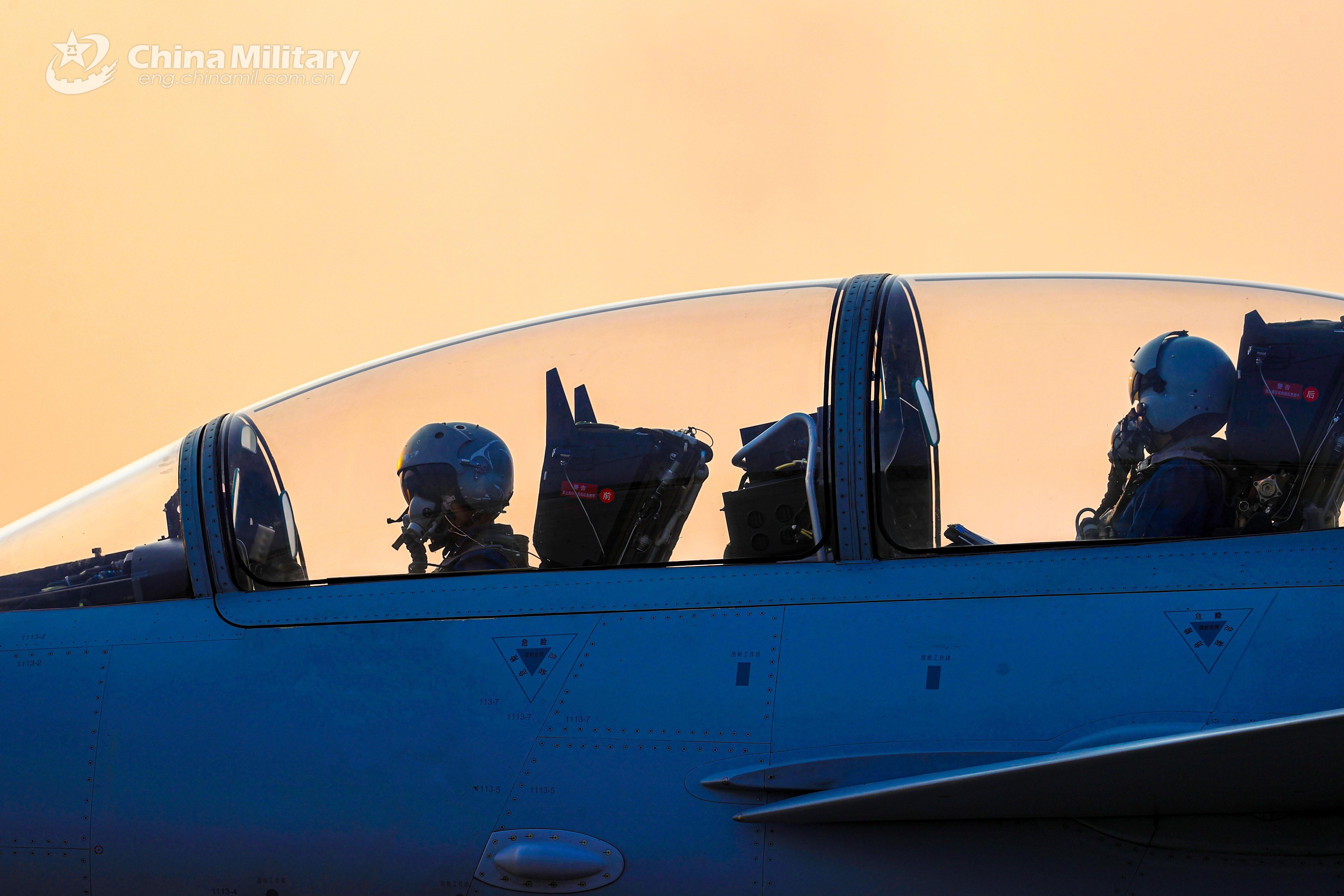 Pilots assigned to an aviation brigade of the air force under the PLA Southern Theater Command sit in the cockpit of their fighter jet while waiting for take-off during a flight training exercise in late April, 2021. (eng.chinamil.com.cn/Photo by Wang Guoyun)
