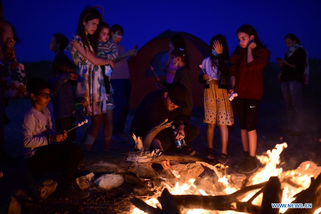 Israelis gather around a bonfire to celebrate Lag BaOmer in Tel Aviv, Israel, on April 29, 2021. Lag BaOmer, also known as Lag B'Omer, is a Jewish festival celebrated on the 33rd day of the Counting of the Omer, which occurs on the 18th day of the Hebrew month of Iyar. (Tomer Neuberg/JINI via Xinhua)