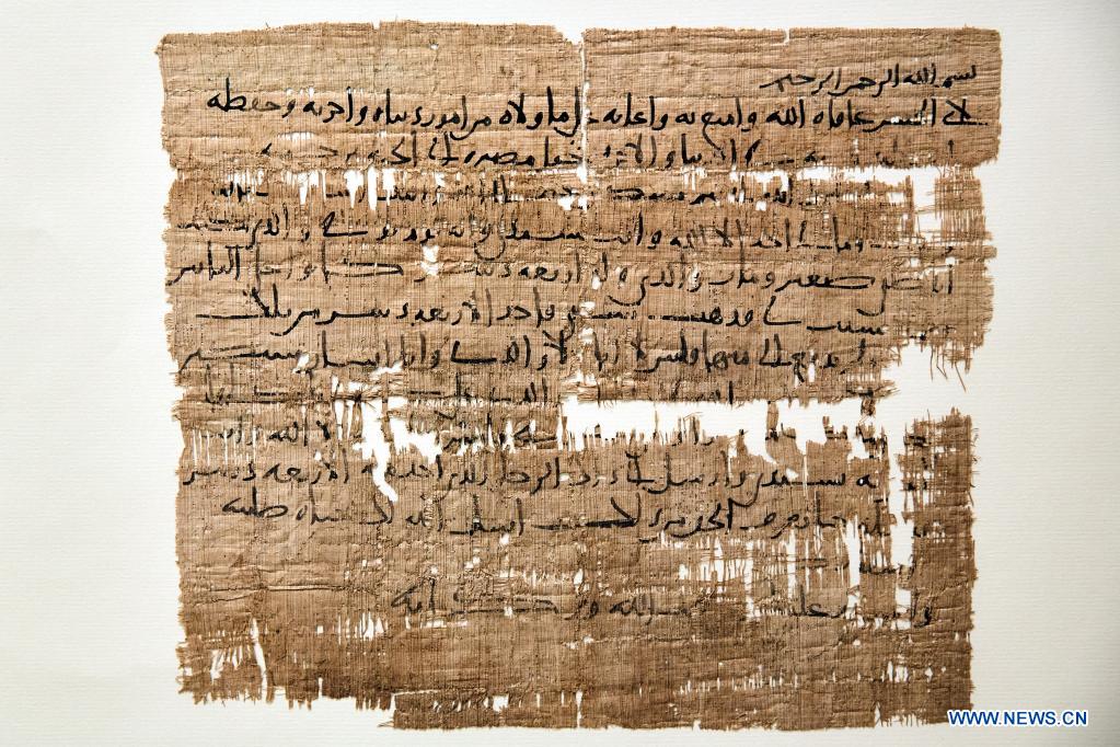 Photo taken on April 28, 2021 shows a petition in Arabic from a child in the 8th to the 9th century AD, in Papyrus Museum of Austrian National Library in Vienna, Austria. The renewed and expanded Papyrus Museum will reopen its door to public on May 4. (Photo by Georges Schneider/Xinhua)
