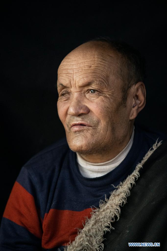 Photo taken on April 15, 2021 shows a portrait of Yangdo in Go'nyer Village of Wumatang Township in Damxung County of Lhasa, capital of southwest China's Tibet Autonomous Region, April 15, 2021. Before the democratic reform in Tibet in 1959, Yangdo was a serf and lived under cruel feudal serfdom and abject penury. "Even yaks can eat grass but we could only beg for the serf owner's mercy," Yangdo, 84, recalled. "The owner never gave us anything like meat buns. We had no way to eat meat at all." Now, Yangdo lives in his Tibetan-style house with his children and grandchildren. "In the past, no man was born equal. As ordinary people, we were classified as those who were unlucky." said Yangdo. "But now, I feel happy from the bottom of my heart." (Xinhua/Sun Ruibo)