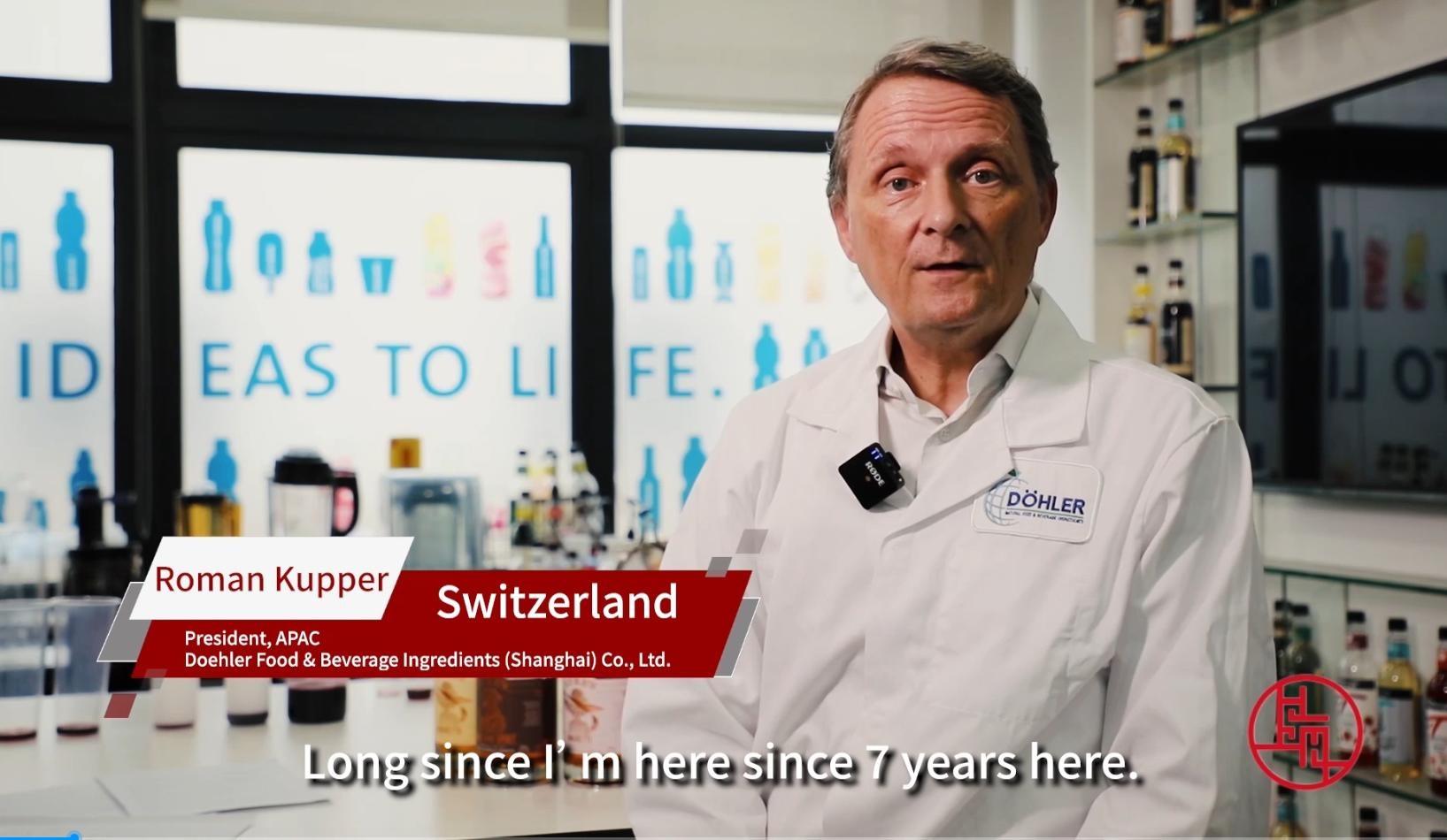 Roman Kupper, president of D?hler Food and Beverage Ingredients (Shanghai) Co, moved to Shanghai seven years ago. “I would say it’s one of the best decisions I’ve ever made in the last 10 years,” he said.