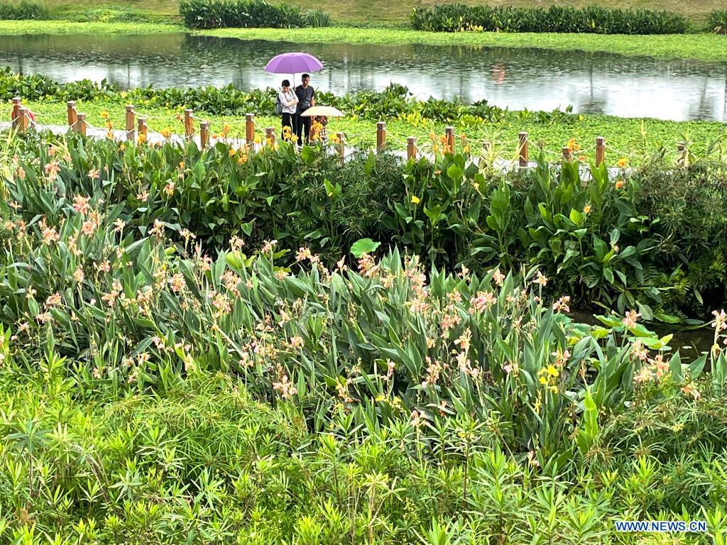 Tourists visit the Nakao River wetland park in Nanning, south China's Guangxi Zhuang Autonomous Region, May 5, 2021. (Xinhua/Zhou Hua)