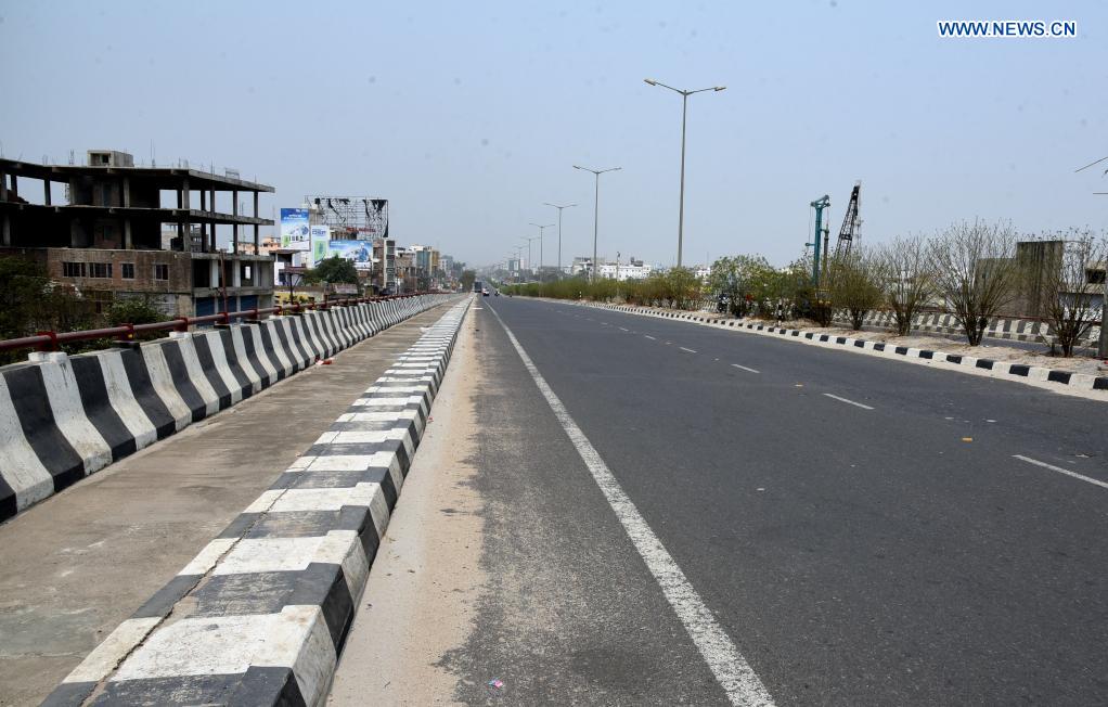 An empty street is seen in Patna, India, May 5, 2021. India's COVID-19 tally surpassed 21 million on Thursday as 412,262 new cases were registered across the country in the past 24 hours, said federal health ministry. (Str/Xinhua)