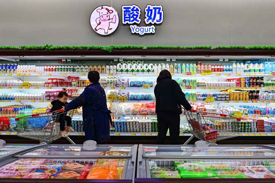 People visit a supermarket in Weifang, east China's Shandong Province, April 9, 2021. (Photo by Wang Jilin/Xinhua)