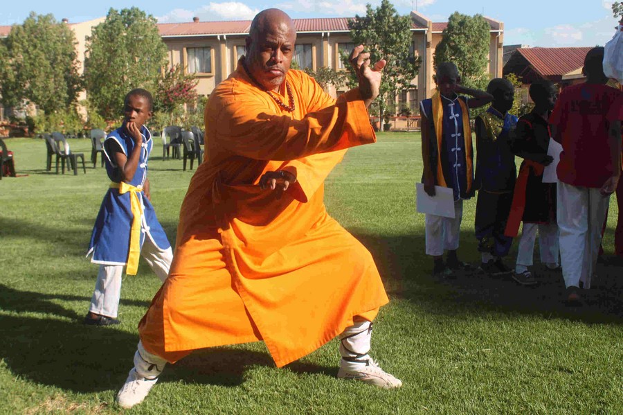 Edward Scott showcases Chinese Kung Fu or Chinese Martial Arts skills during a training session at a youth center in Francistown, Botswana, Dec. 2, 2020. (Xinhua/Shingirai Madondo)
