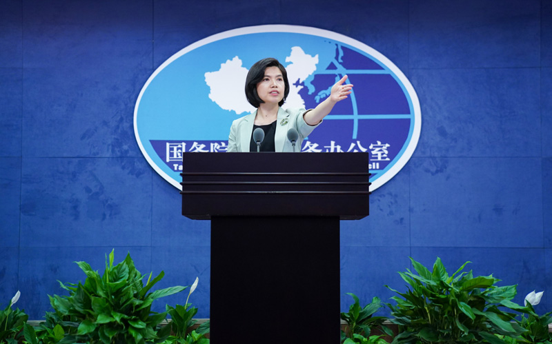 Zhu Fenglian, a spokeswoman for the Taiwan Affairs Office of the State Council, takes questions at a news conference on May 12, 2021. [Photo/Xinhua]