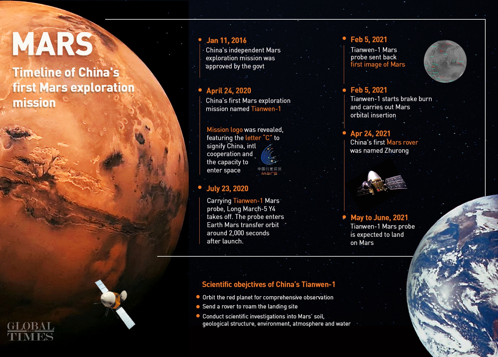 Although the Mars landing is well known as "seven minutes of terror," the time spent may vary due to different design, Pang Zhihao, a Beijing-based senior space expert, told the Global Times.