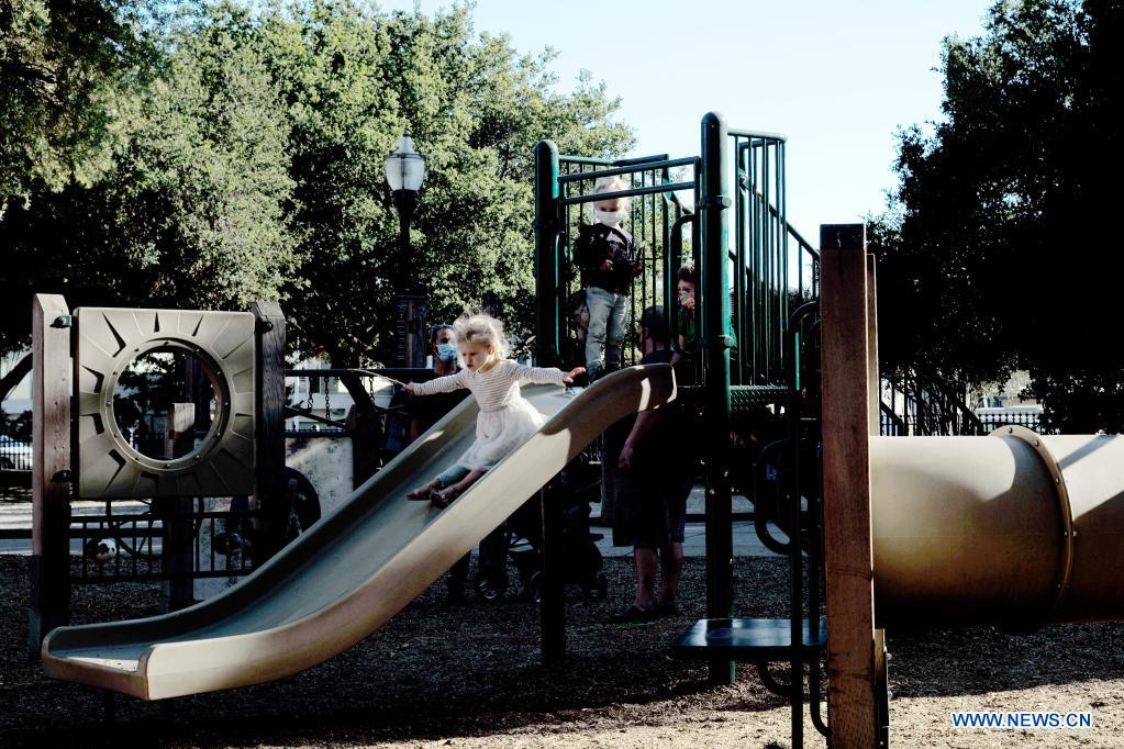 Children play at Central Park in San Mateo, the United States, May 13, 2021. (Xinhua/Wu Xiaoling)