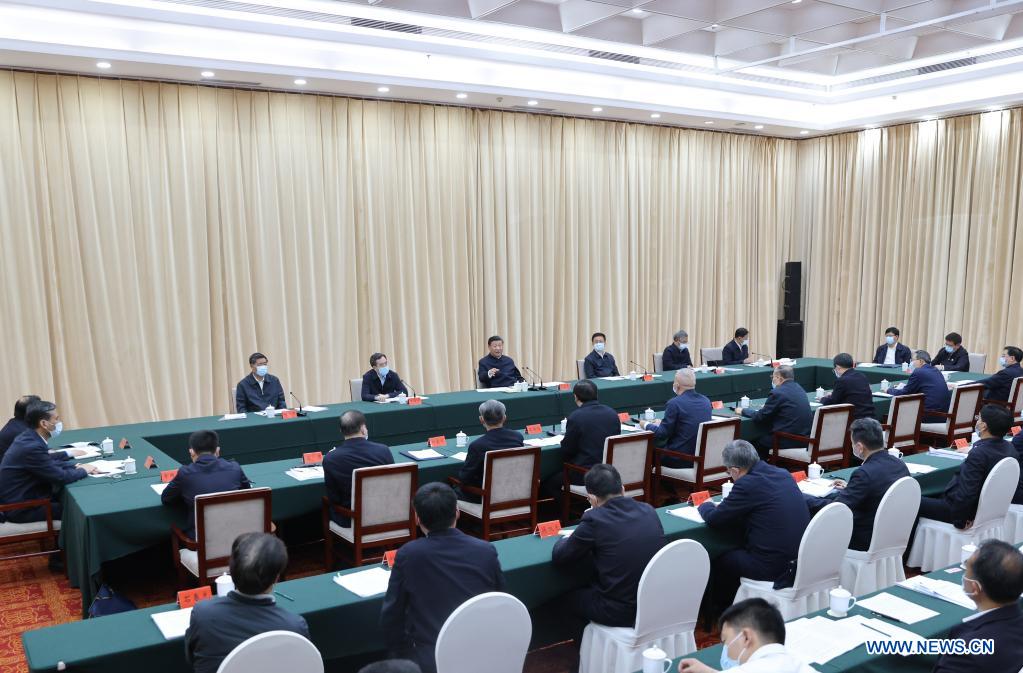Chinese President Xi Jinping, also general secretary of the Communist Party of China Central Committee and chairman of the Central Military Commission, convenes a symposium on advancing the high-quality follow-up development of the South-to-North Water Diversion Project, in Nanyang, central China's Henan Province, May 14, 2021. (Xinhua/Wang Ye)