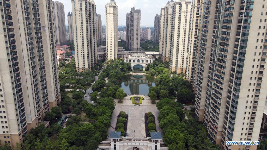 Aerial photo taken on May 17, 2021 shows a quarantined residential community in Yu'an District of Lu'an City, east China's Anhui Province. The city of Lu'an in east China's Anhui Province has raised the COVID-19 alert levels from low-risk to medium-risk in four residential communities, the city's health commission said on Monday. The city currently has six areas classified as medium-risk. (Xinhua/Zhou Mu)