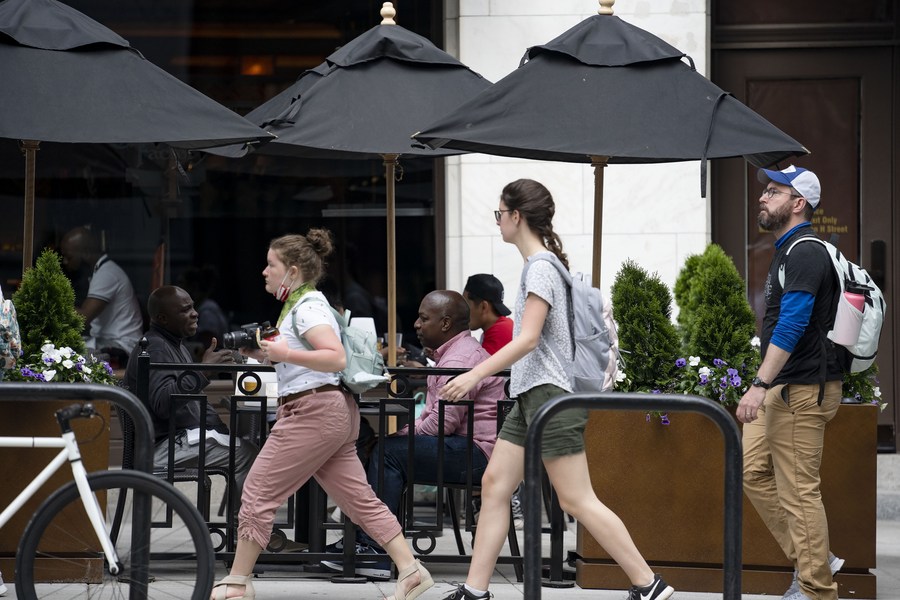 People dine at a restaurant in Washington, D.C., the United States, May 14, 2021. (Xinhua/Liu Jie)