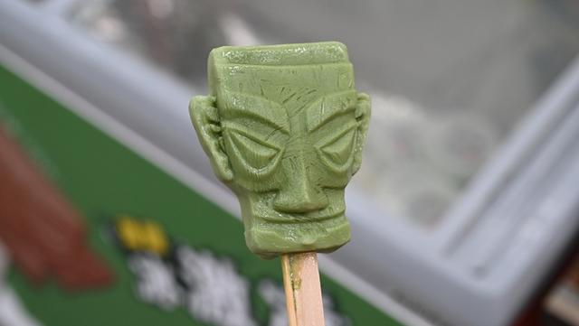 Photo shows an ice cream bar in the shape of a bronze mask unearthed from the legendary Sanxingdui Ruins in southwest China’s Sichuan province. (Photo/Shanghai Observer)