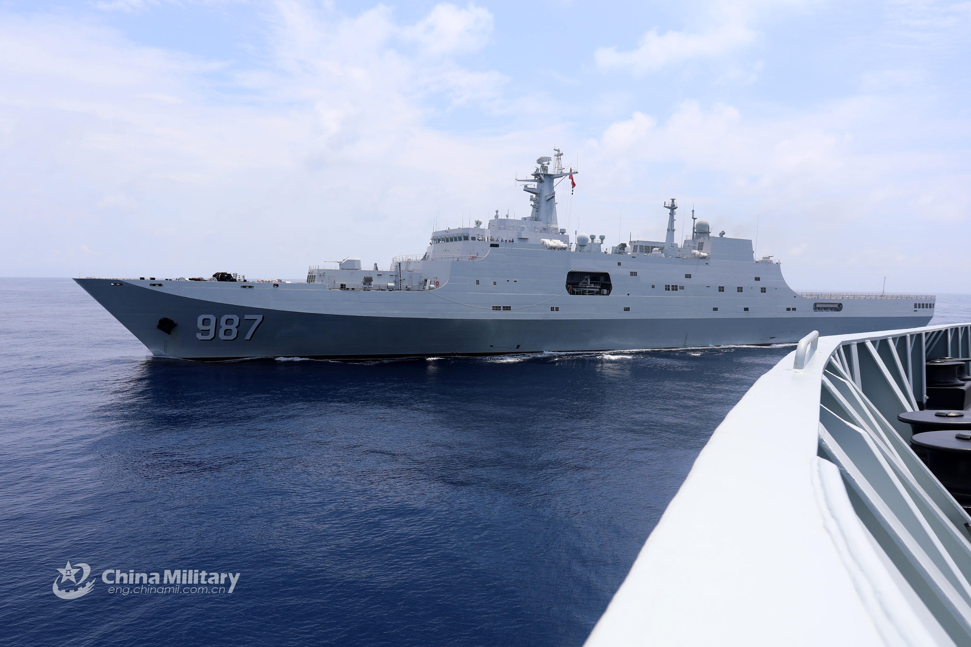 Vessels attached to a naval landing ship flotilla under the PLA Southern Theater Commandperform simulated underway astern replenishment during a combat training exercise in late April, 2021. (eng.chinamil.com.cn/Photo by Liu Jinyu)