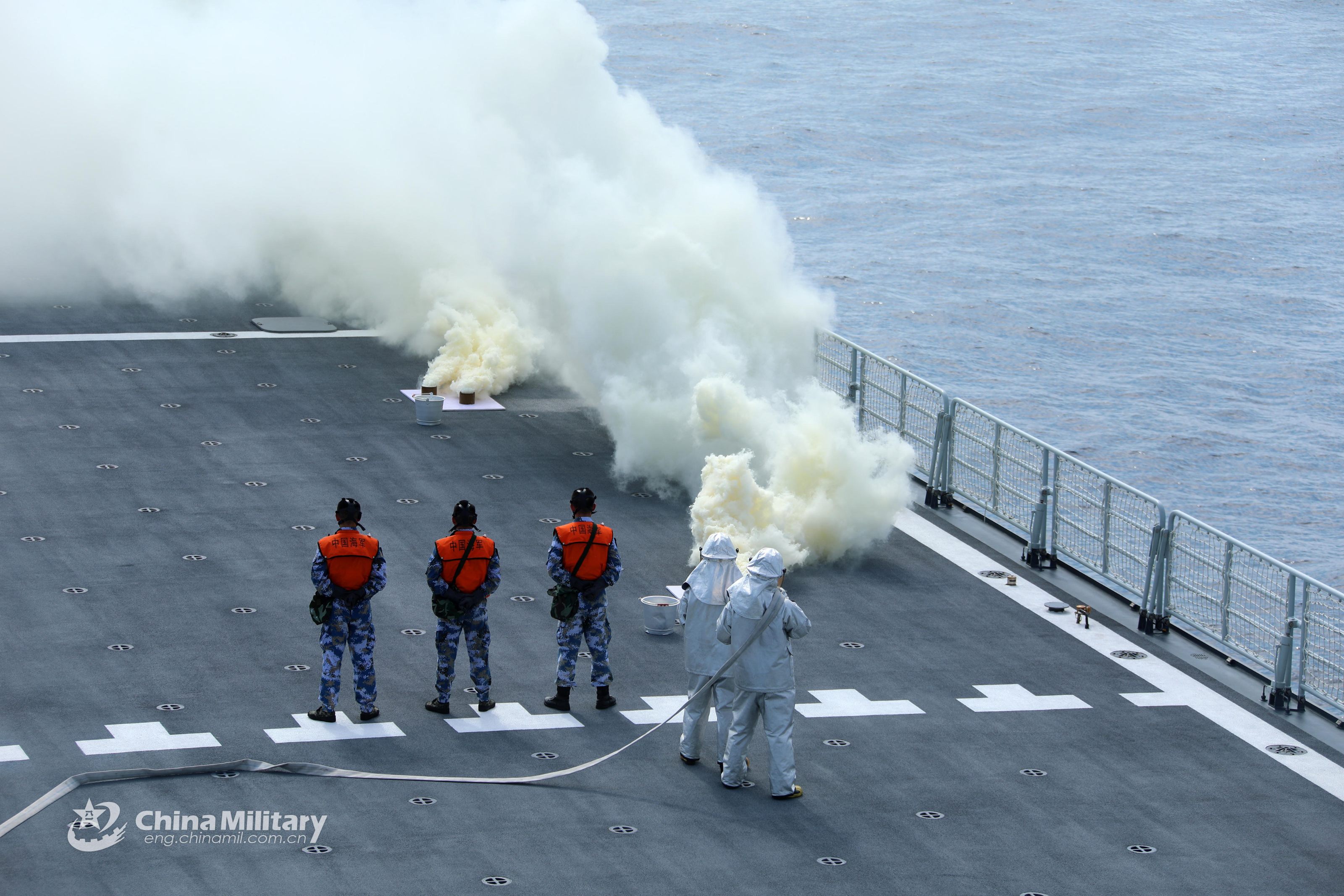 Soldiers assigned toa naval landing ship flotilla under the PLA Southern Theater Command lay a smokescreen during a combat training exercise in late April, 2021. (eng.chinamil.com.cn/Photo by Liu Jinyu)