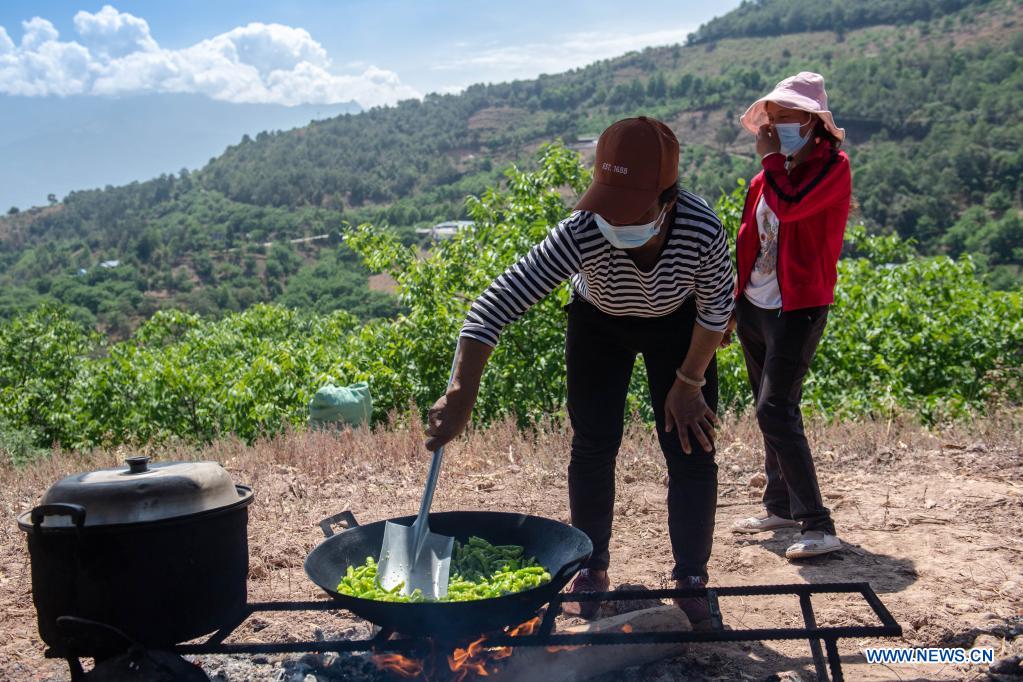 A woman cooks food at a quake-relief settlement site in Yangbi Yi Autonomous County, southwest China's Yunnan Province, May 24, 2021. Four earthquakes over 5.0-magnitude struck Yangbi Yi Autonomous County in Dali Bai Autonomous Prefecture of Yunnan from 9 p.m. to 11 p.m. May 21, Beijing Time. (Xinhua/Hu Chao)