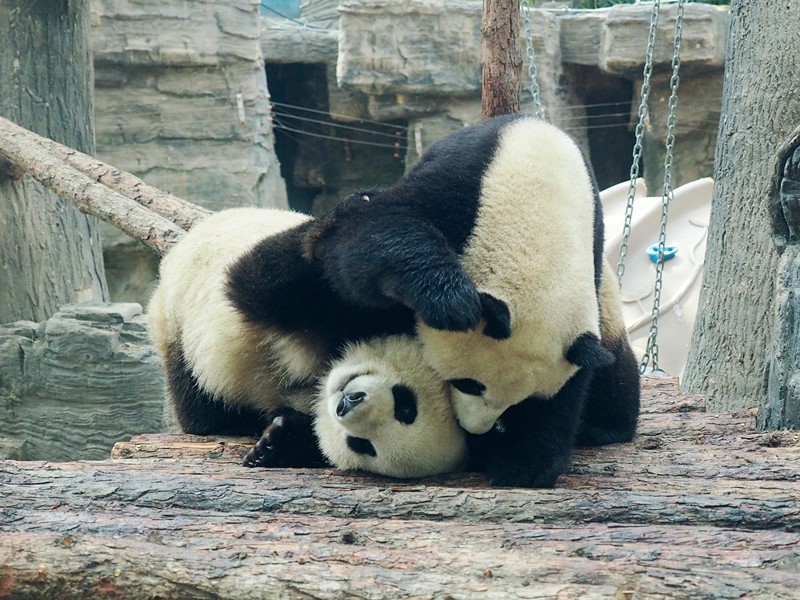 Photo taken on April 26, 2021, shows giant panda twin sisters at the Beijing Zoo. (People's Daily Online/Du Jianpo)