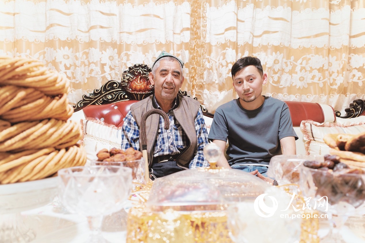 Memtimin Ghopur and his ancestral house in Hotan, northwest China's Xinjiang Uygur Autonomous Region. (People's Daily Online/Kou Jie)