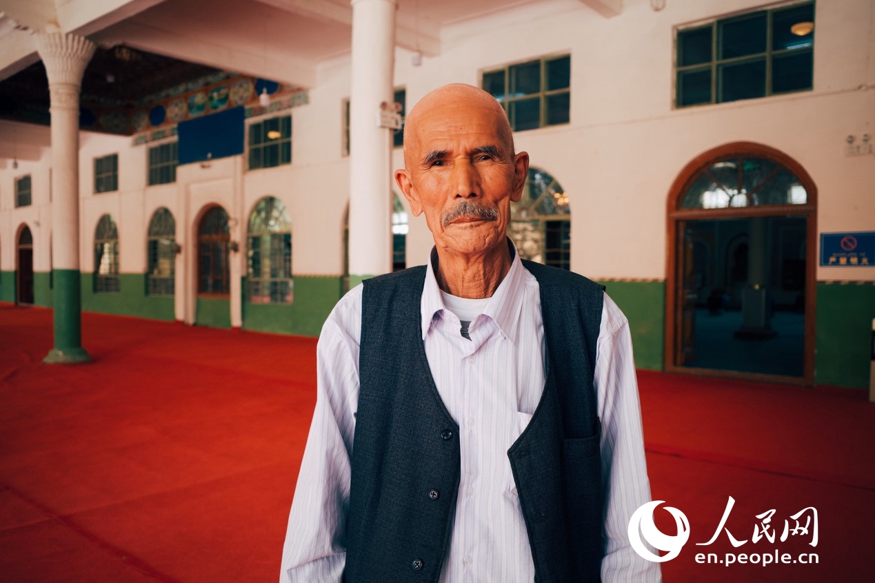 78-year-old Kadir Yusup is a frequent visitor of the Ujmilik Mosque. (People's Daily Online/Kou Jie)