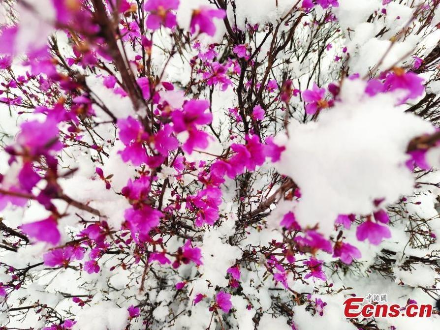Snow-covered Azalea flowers in N China create unseasonal summer scenery (3)