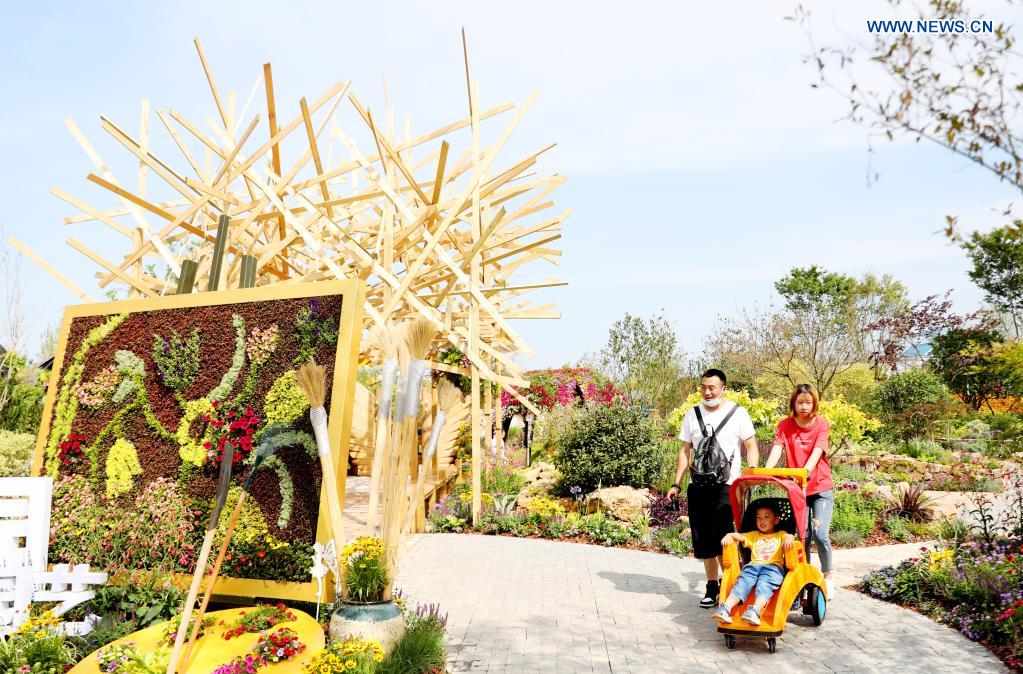 People visit the 10th China Flower Expo in east China's Shanghai, May 21, 2021. The 10th China Flower Expo opened here on Friday, welcoming over 20,000 visitors on its first day. The expo, held to showcase the development of China's flower industry, will last until July 2. A total of 180 outdoor exhibition zones and 64 indoor areas have been set up at the expo park in the city's Chongming District. (Xinhua/Fang Zhe)