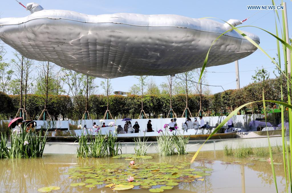 People visit the 10th China Flower Expo in east China's Shanghai, May 21, 2021. The 10th China Flower Expo opened here on Friday, welcoming over 20,000 visitors on its first day. The expo, held to showcase the development of China's flower industry, will last until July 2. A total of 180 outdoor exhibition zones and 64 indoor areas have been set up at the expo park in the city's Chongming District. (Xinhua/Fang Zhe)