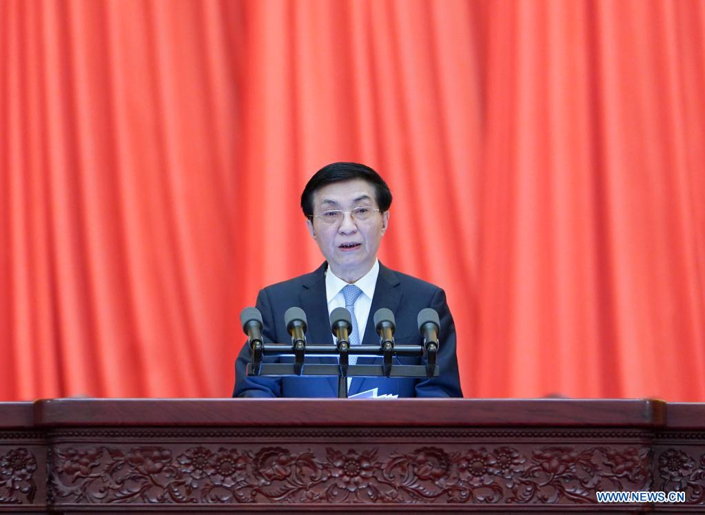 Wang Huning, a member of the Standing Committee of the Political Bureau of the Communist Party of China (CPC) Central Committee and a member of the Secretariat of the CPC Central Committee, addresses the third session of the 10th national congress of the China Association for Science and Technology at the Great Hall of the People in Beijing, capital of China, May 29, 2021. (Xinhua/Gao Jie)