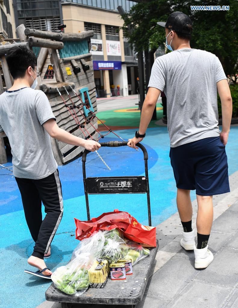 Residents carry daily necessities home in Liwan District, Guangzhou City, south China's Guangdong province, May 30, 2021. Price and supply of daily necessities are stable here amid the ongoing COVID-19 pandemic. (Xinhua/Deng Hua)