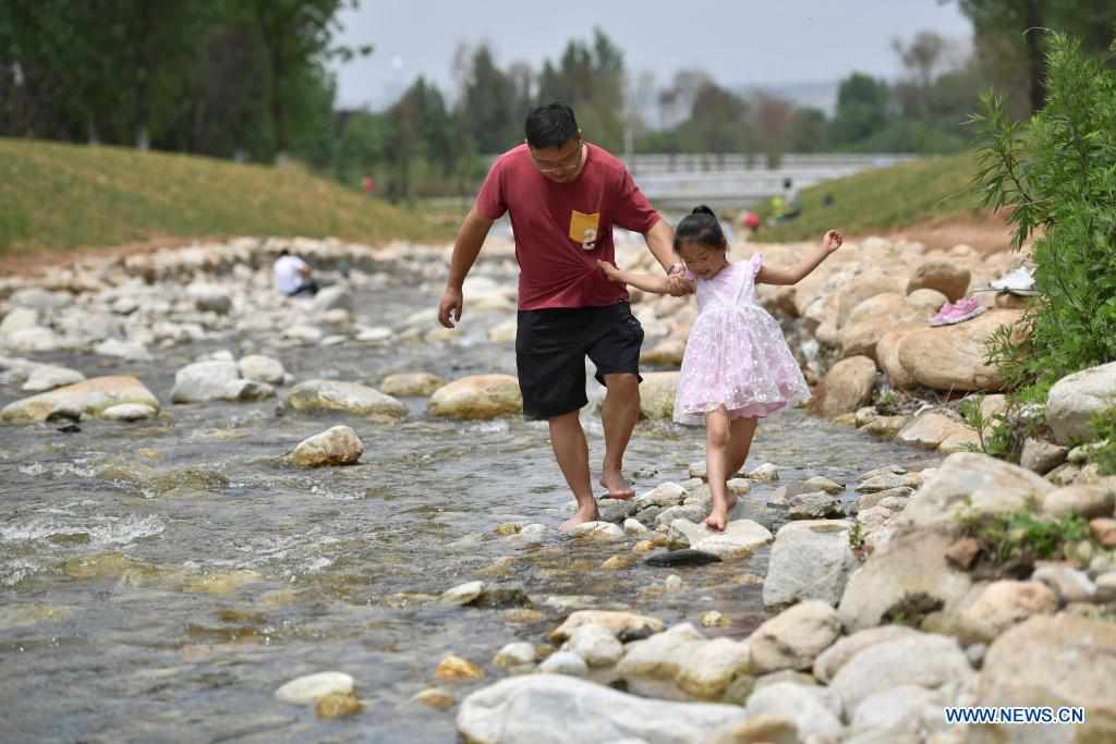 People have fun at the foot of Qinling Mountain in Xi'an, northwest China's Shaanxi Province, May 29, 2021. (Xinhua/Shao Rui)