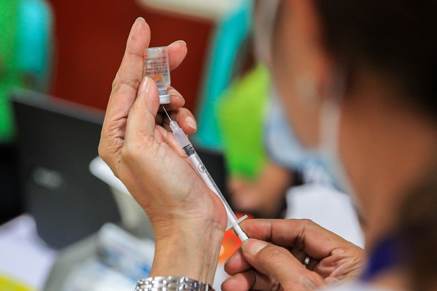 A health worker prepares a dose of Sinovac vaccine at a vaccination site in Manila, the Philippines on March 31, 2021. (Xinhua/Rouelle Umali)