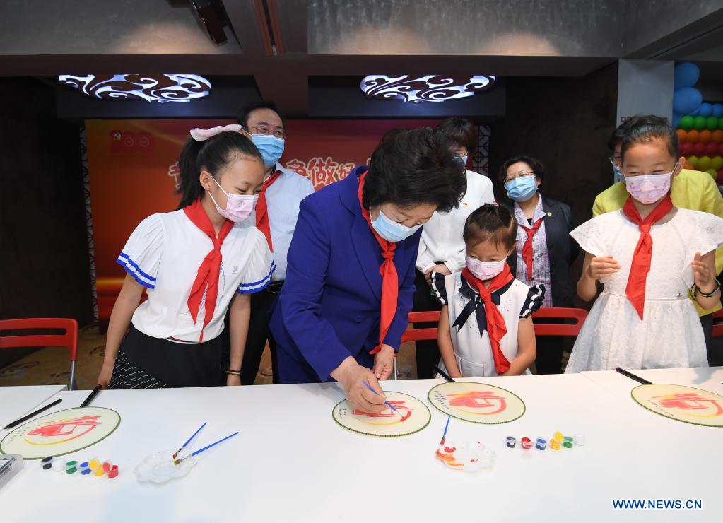 Sun Chunlan, a member of the Political Bureau of the Communist Party of China Central Committee and head of the National Working Committee on Children and Women under the State Council, extends festival greetings to children of all ethnic groups in China and sends regards to all who work for the benefit of children when attending a children's day celebration at a library in Beijing, capital of China, June 1, 2021. (Xinhua/Shen Hong)