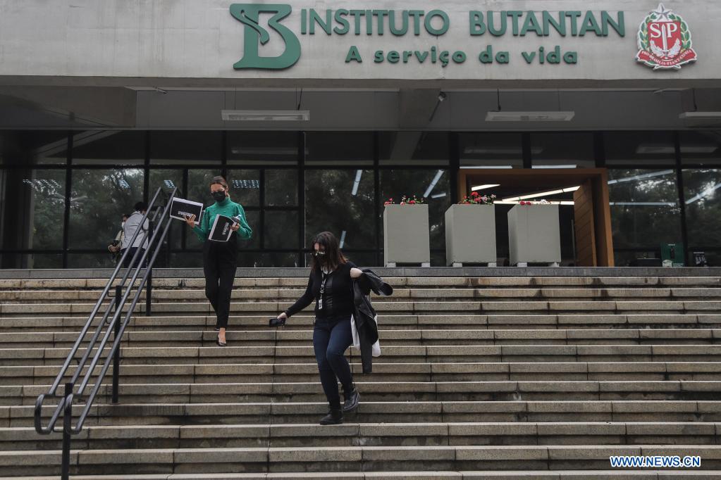 Photo taken on May 31, 2021 shows the Butantan Institute building in Sao Paulo, Brazil. An unprecedented experiment in the world, carried out in Brazil's small town of Serrana, in Sao Paulo State, has succeeded in reducing new deaths from COVID-19 by 95 percent and controlling the pandemic after 75 percent of the adult population received two doses of Chinese company Sinovac's CoronaVac vaccine, local authorities said. (Photo by Rahel Patrasso/Xinhua)