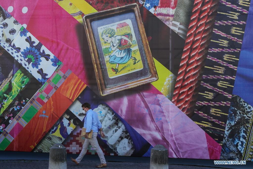 A man passes the art installation "Happy Coincidences" by Amanda Browder in Bruges, Belgium, June 1, 2021. From May 8 to Oct. 24, the third Triennial Bruges brings contemporary art and architecture to the city with rich history. With the theme "TraumA," art pieces created by thirteen artists and architects were shown in different places in the city. (Xinhua/Zheng Huansong)